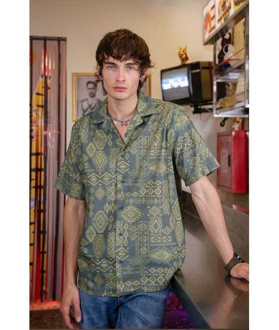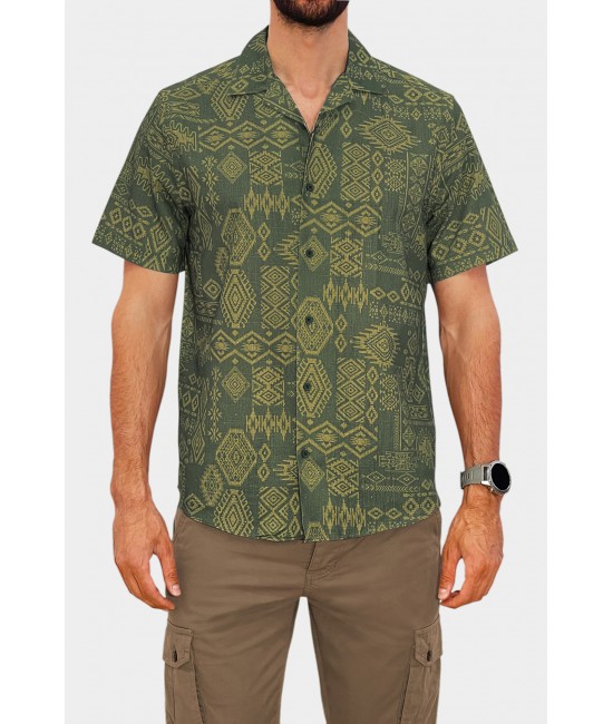 3GUYS Ανδρικό κοντομάνικο πουκάμισο σε άνετη γραμμή με all over ψηφιακό τύπωμα.