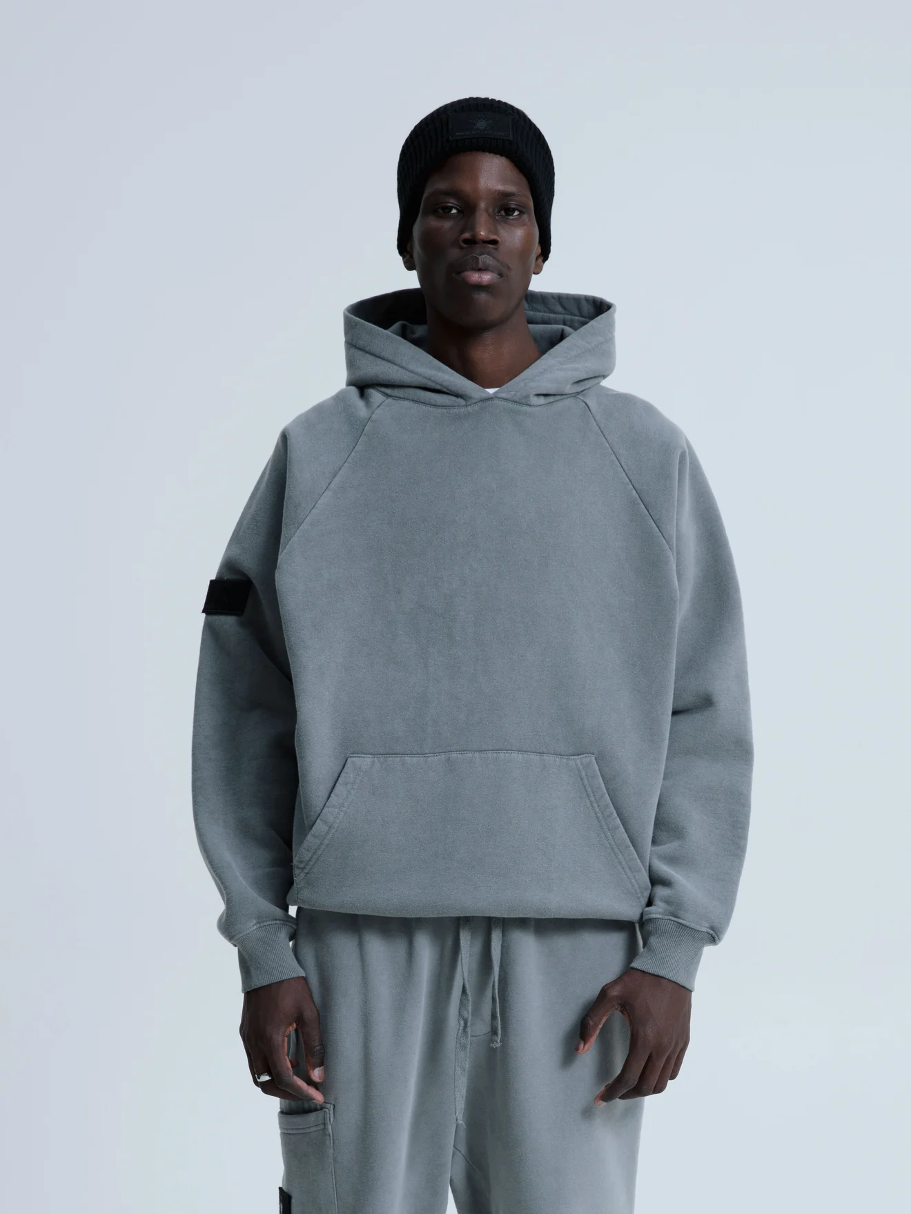 Φούτερ βαμβακερή,πετροπλυμένη με βιολογικές βαφές φιλικές προς το περιβάλλον και με διακοσμητικό logo στο μανίκι.
